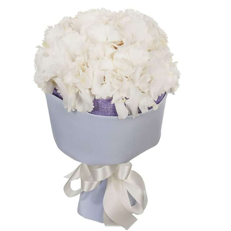 Букет состоит из 1 белая гортензия, красивая упаковка, атласная лента.